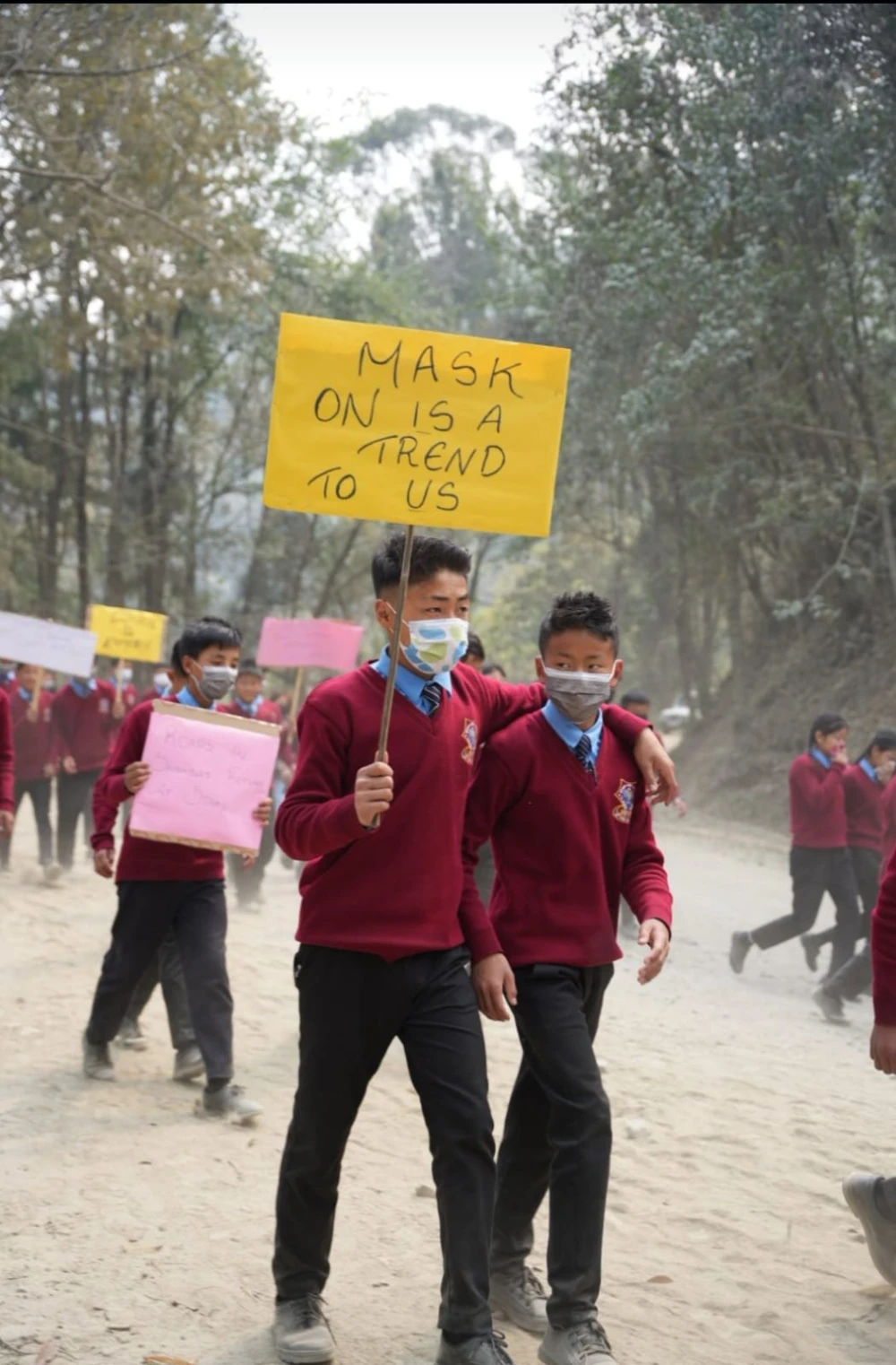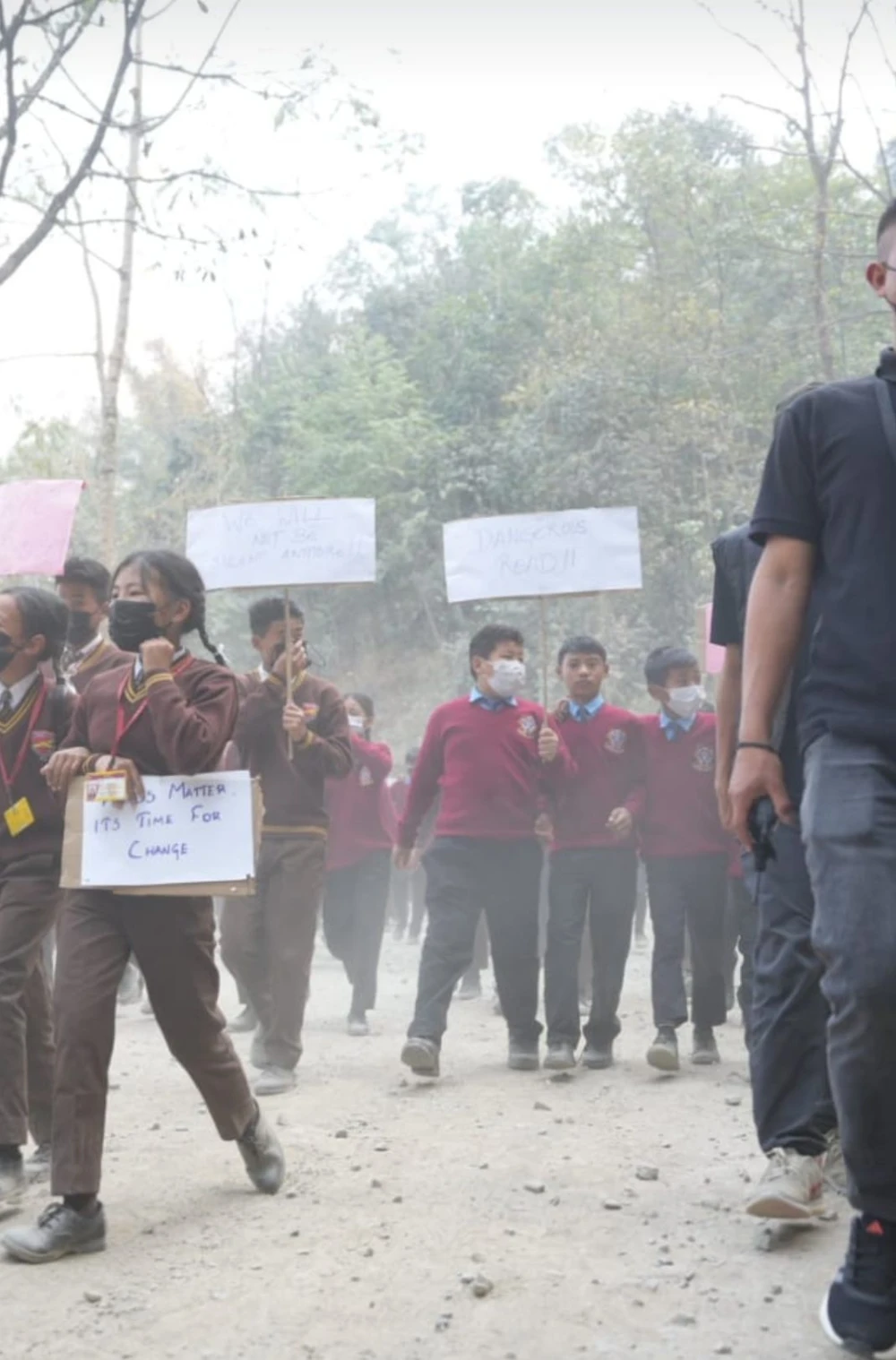 Placards carried by students highlighted how the dilapidated road conditions were unfair, causing people to endure unhealthy living conditions and affecting them economically and physically, while calling for urgent attention to the demand for better roads.