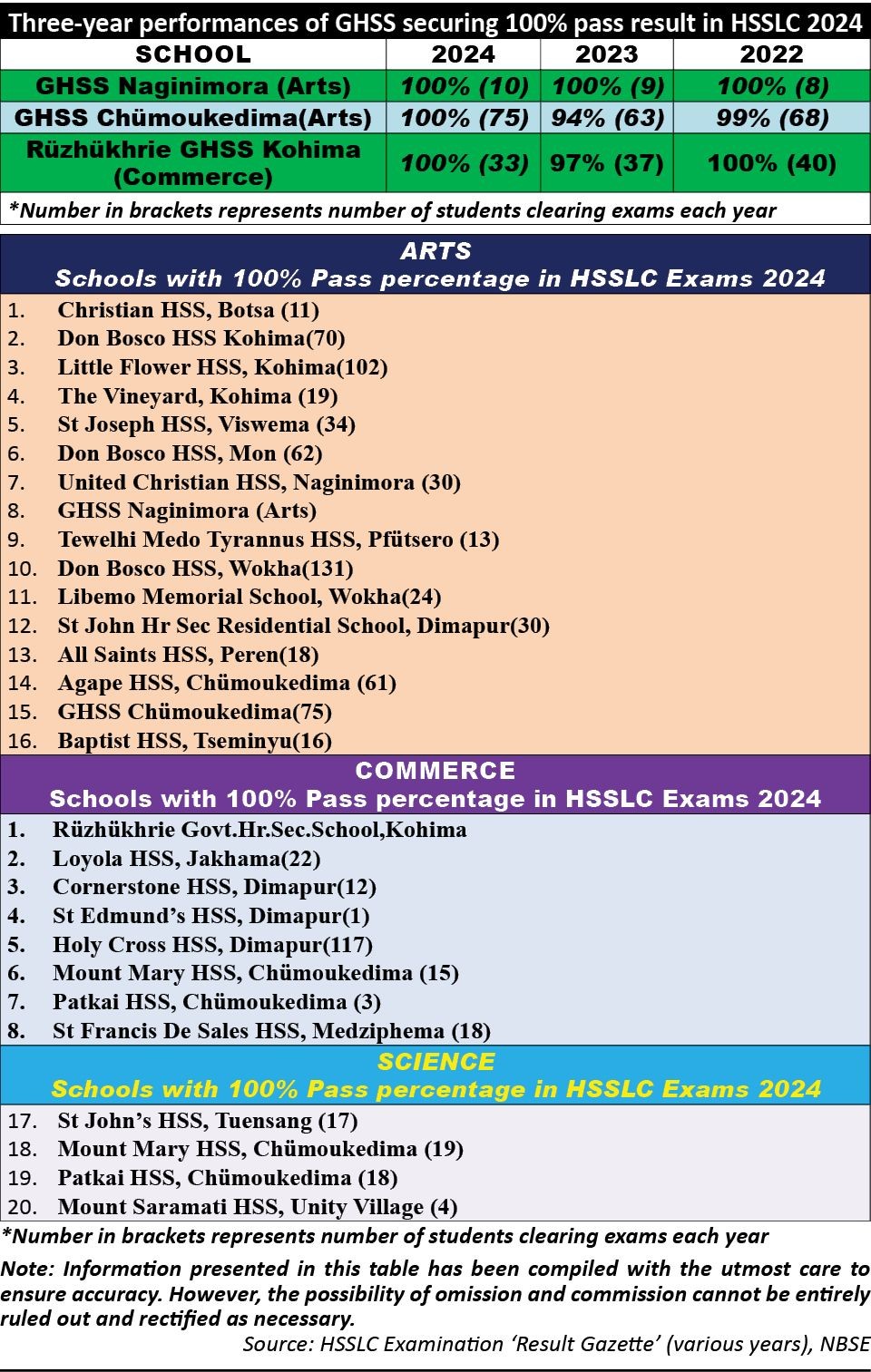 These schools were GHSS Naginimora and GHSS Chümoukedima in Arts stream, and Rüzhükhrie GHSS Kohima in Commerce.