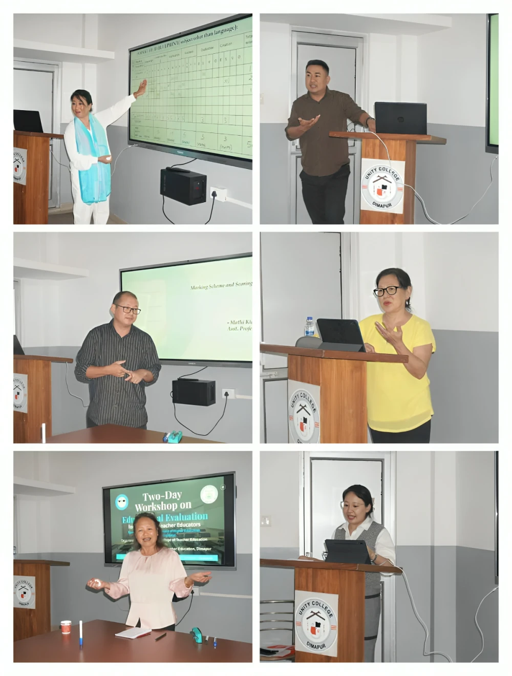 Facilitators included Dr T Alemla Longkumer, Kerilhusa Peseyie, Tiajungla, Mathiba Kichu, Dr Bendangyapangla, and Dr Elizabeth Walling, each contributing expertise in different aspects of assessment design.