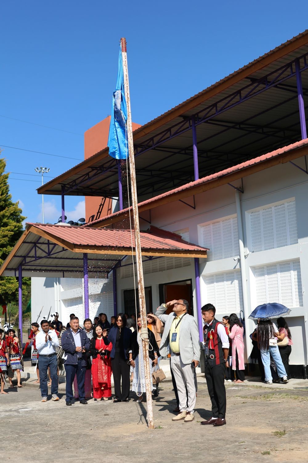 Vice Chancellor of Nagaland University, Prof Jagadish K Patnaik unfurls the flag at the Inter-Campus Meet at I Lhoshe Kinimi Hall, Lumami on November 12.