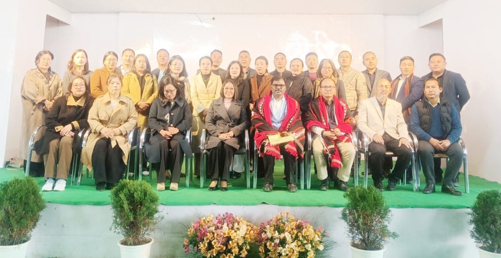 Nagaland University inspection team along with the faculty of Pfutsero Government College poses for a photo at the college’s auditorium on April 11.