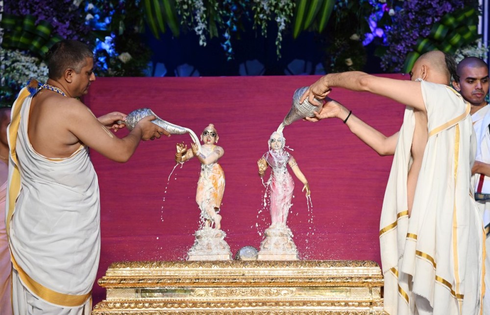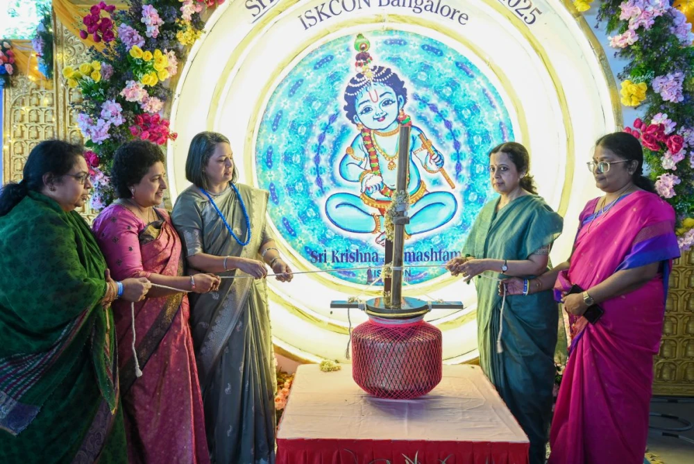 Bengaluru: Priests perform rituals during the Krishna Janmashtami festival at the ISKCON temple in Bengaluru on Saturday, August 16, 2025. (Photo: IANS)