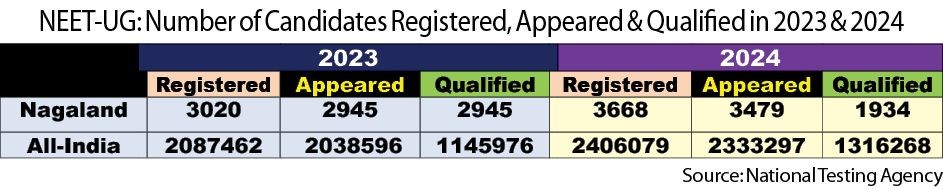 The percentage, based on the number of students appearing and qualifying, is more or less the same as in 2023, marking the best NEET results for Nagaland so far.