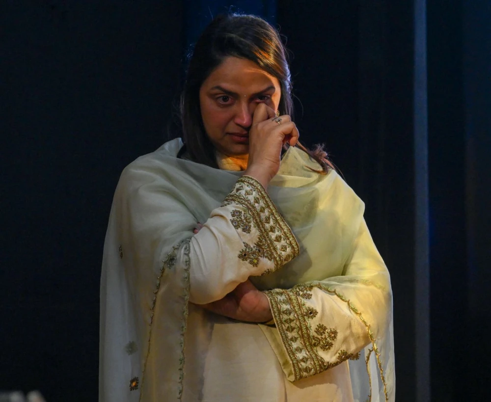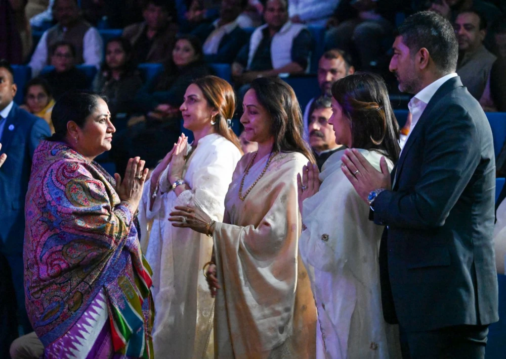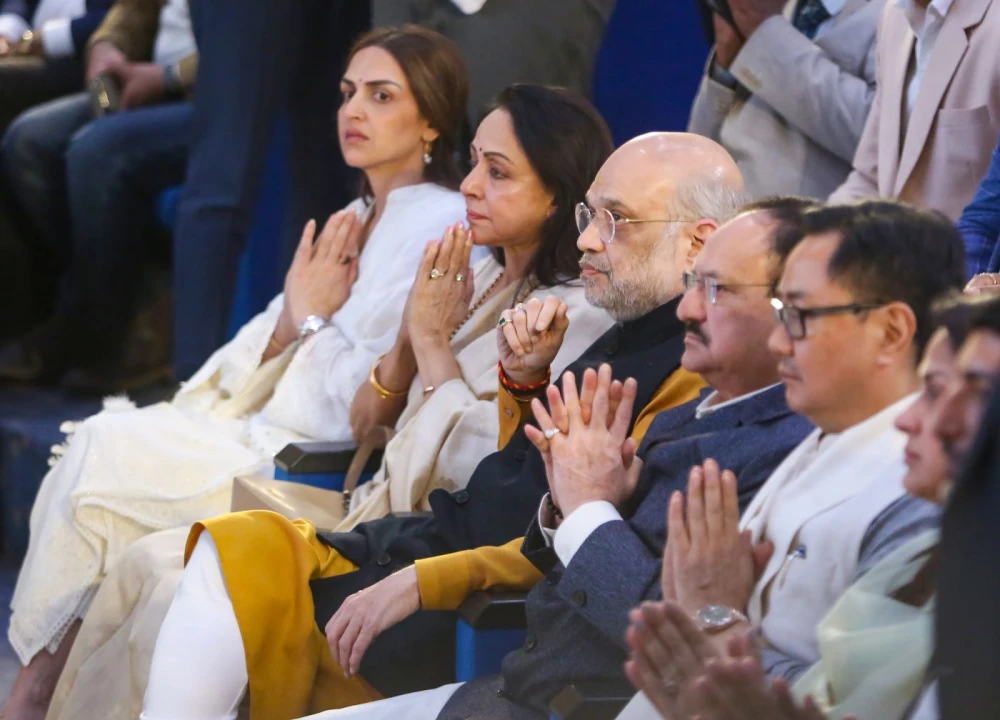 New Delhi: Actress and wife of Dharmendra, Hema Malini, speaks at the prayer meet in memory of actor Dharmendra at the Dr. Ambedkar International Centre in New Delhi on Thursday, December 11, 2025. (Photo: IANS/Prem Nath Pandey)New Delhi: Actress and wife of Dharmendra, Hema Malini, actress and daughter of Dharmendra Esha Deol, and Union Ministers Amit Shah, JP Nadda, and Kiren Rijiju at the prayer meet in memory of actor Dharmendra at the Dr. Ambedkar International Centre in New Delhi on Thursday, December 11, 2025. (Photo: IANS/Prem Nath Pandey)New Delhi: Delhi Chief Minister Rekha Gupta, actress and wife of Dharmendra, Hema Malini, and daughters of Dharmendra, Esha Deol and Ahana Deol, at the prayer meet in memory of actor Dharmendra at the Dr. Ambedkar International Centre in New Delhi on Thursday, December 11, 2025. (Photo: IANS/Deepak Kumar)New Delhi: Actress and wife of Dharmendra, Hema Malini, and daughters of Dharmendra, Esha Deol and Ahana Deol, and others at the prayer meet in memory of actor Dharmendra at the Dr. Ambedkar International Centre in New Delhi on Thursday, December 11, 2025. (Photo: IANS/Deepak Kumar)New Delhi: Daughter of late actor Dharmendra, Ahana Deol, turns emotional during the prayer meet held in his memory at the Dr. Ambedkar International Centre in New Delhi on Thursday, December 11, 2025. (Photo: IANS/Deepak Kumar)New Delhi: Actress and wife of Dharmendra, Hema Malini, and daughters of Dharmendra, Esha Deol and Ahana Deol, at the prayer meet in memory of actor Dharmendra at the Dr. Ambedkar International Centre in New Delhi on Thursday, December 11, 2025. (Photo: IANS/Deepak Kumar)New Delhi: A tribute wall featuring multiple photographs from Dharmendra’s younger days, during the prayer meet held in his memory at the Dr. Ambedkar International Centre in New Delhi on Thursday, December 11, 2025. (Photo: IANS)