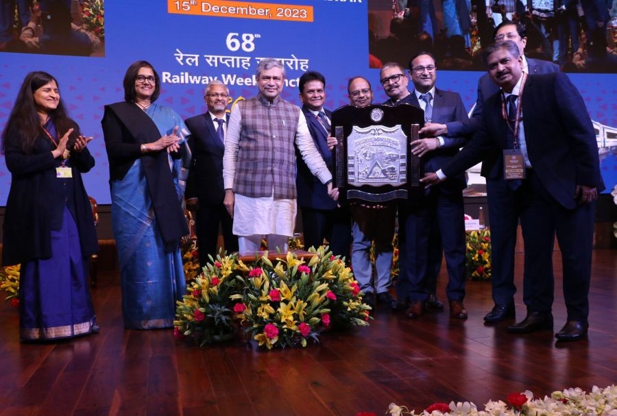 Ashwini Vaishnaw, Minister of Railways, Electronics and Information Technology & Communications presented the shield to General Manager of NF Railway Chetan Kumar Shrivastava & General Manager of Southern Railway during a function that held on December 15 at Bharat Mandapam, Pragati Maidan, New Delhi.