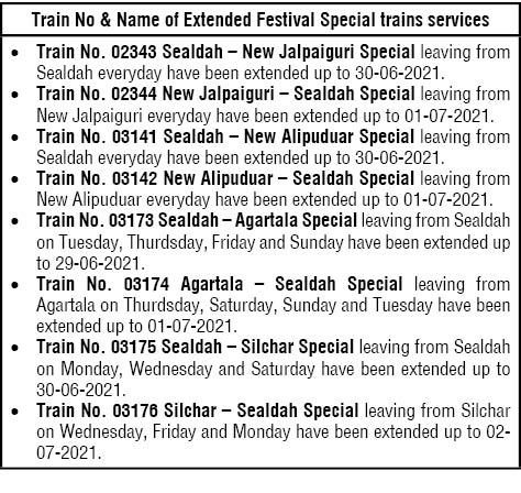 These special trains will run as per existing timings, composition and days of run for the convenience of passengers, stated the release issued by the NFR’s Chief Public Relations Officer Subhanan Chanda.
