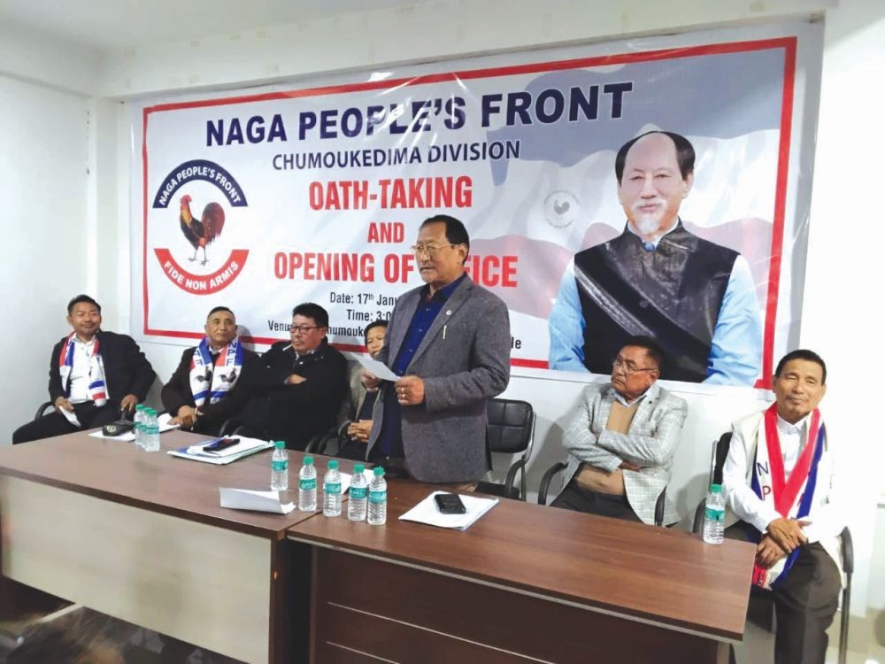 Earlier, the programme, chaired by Vice-President (COB) Phushika Awomi, began with an invocation by Pastor Mhasivizo Pucho of the Chümoukedima Town Baptist Church, followed by the oath of office administered by senior vice-president Charlie Sekhose.