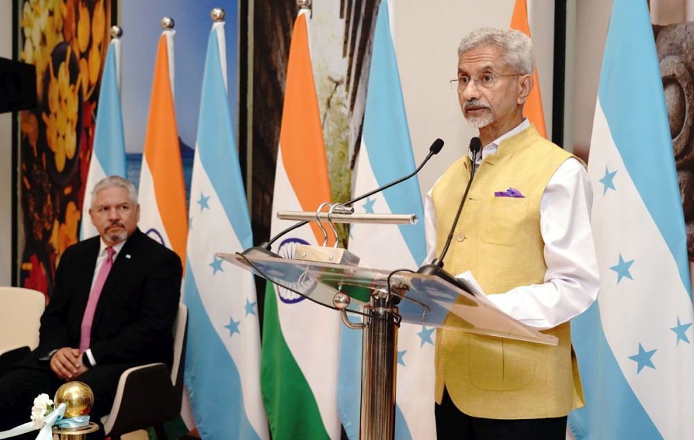 New Delhi: External Affairs Minister S. Jaishankar addresses during the inauguration of the Embassy of the Republic of Honduras, as Honduran Foreign Minister Enrique Reina looks on in New Delhi on Thursday, May 15, 2025. (Photo: IANS)