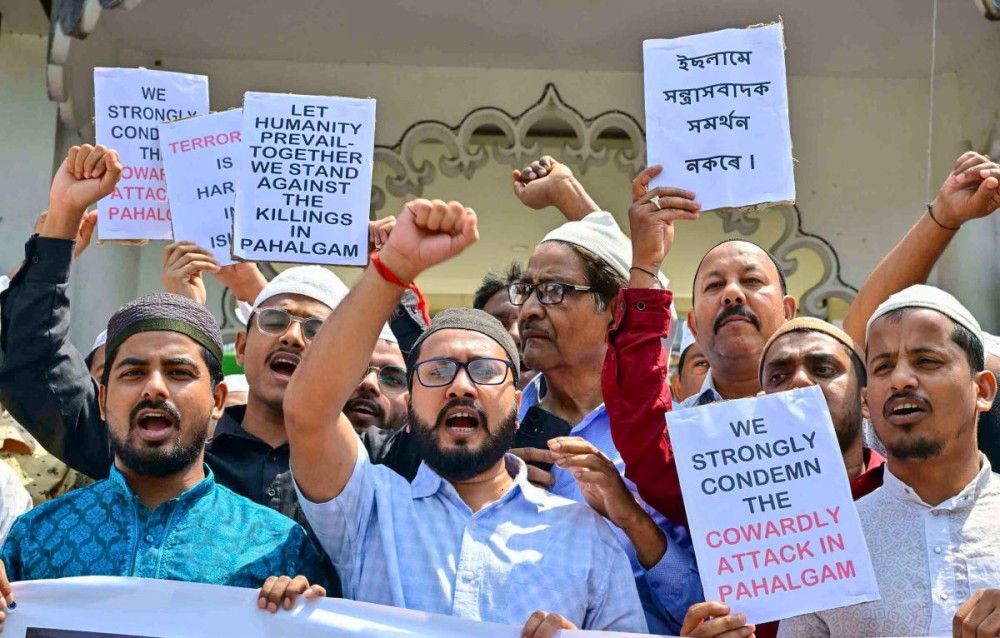 Guwahati: Protesters shout slogans after Friday prayers, condemning the Pahalgam terror attack, in front of Burah Jame Masjid, Guwahati, on Friday, April 25, 2025. (Photo: IANS)