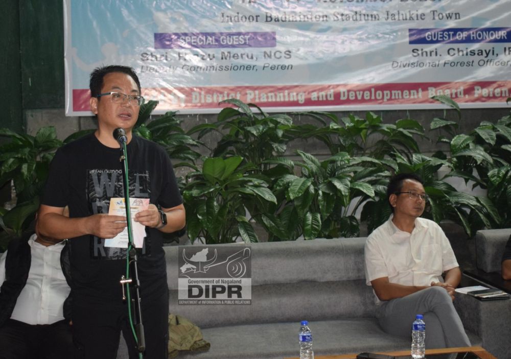 DC Peren, Hiazu Meru addresses the opening ceremony of the 11th Peren District Inter-Departmental Tournament held at the Indoor Badminton Stadium, Jalukie, on November 12. (DIPR Photo)