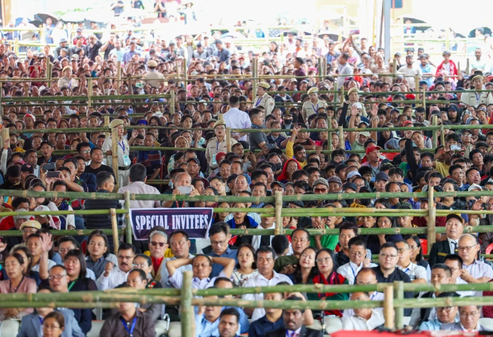 Before addressing the gathering at the Peace Ground, the Prime Minister interacted with the inmates of the relief camps, where thousands of men, women and children have been staying since the violence broke out in Manipur in May 2023.
