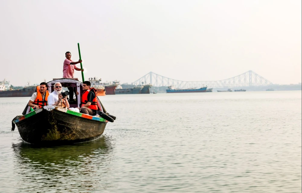 New Delhi, April 24 (IANS) Prime Minister Narendra Modi on Friday spent time on the banks of the Hooghly River in Kolkata, taking a boat ride and reiterated his government’s commitment to the development of West Bengal and the prosperity of its people.