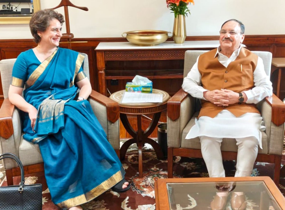 New Delhi, August 21 (IANS) Wayanad MP and Congress leader Priyanka Gandhi Vadra met Union Health Minister J.P. Nadda on Thursday to seek early implementation of health projects in her constituency and renewed the demand for starting an AIIMS in Kerala.
