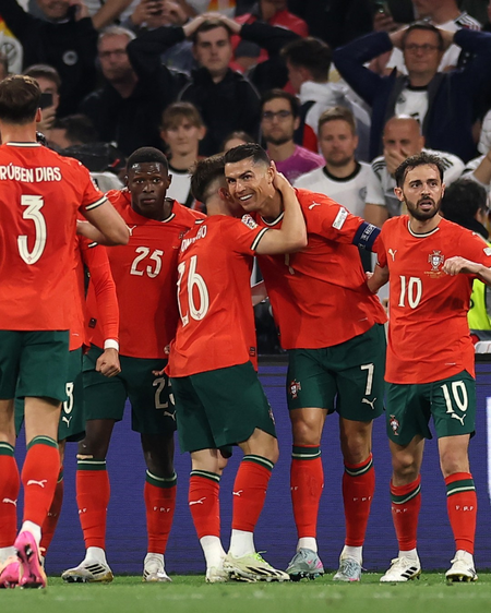 Germany barely had time to regroup before falling behind. A slick one-two between Bruno Fernandes and Nuno Mendes split the German backline, and Mendes' low cross was converted by Ronaldo. At 40 years and 119 days old, he became the oldest player ever to score against Germany.