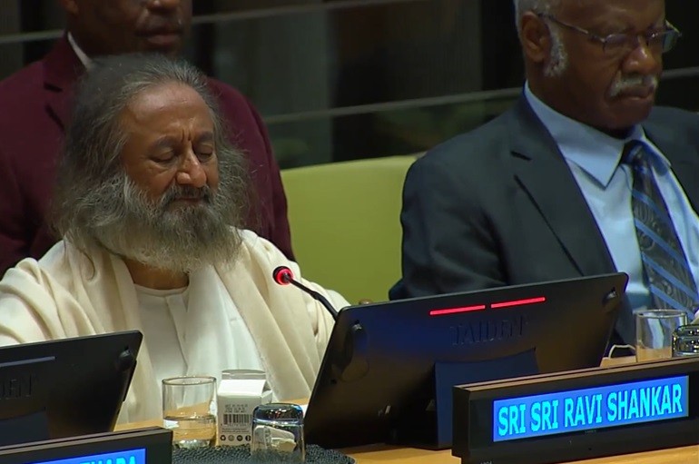 In the oasis of peace at the Trusteeship Council Chamber, Ravi Shankar presided over the ‘Meditation for Global Peace and Harmony’ on the eve of World Meditation Day newly minted by the General Assembly this month.