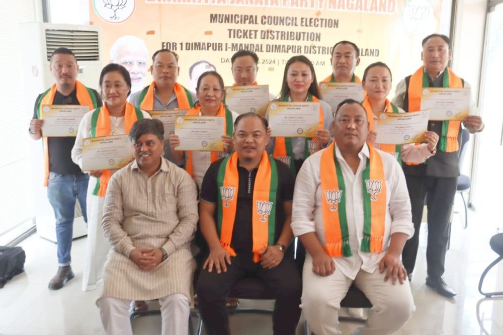 The BJP released a list of 27 names as its candidates for election to seats in the Dimapur Municipal Council (DMC), Chümoukedima Town Council (CTC) and Niuland Town Council (NTC). The candidates were handed the tickets on June 10.