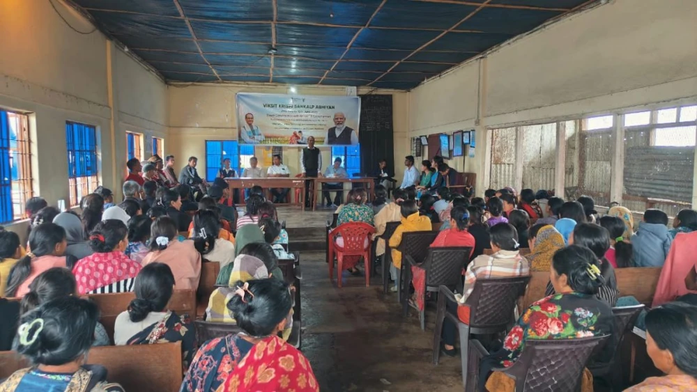 Peren district witnessed a strong turnout at the Community Hall, Mhainamtsi Village, with over 175 farmers attending. Dr I Shakuntala, Dean of CoVSc, CAU Jalukie, explained the campaign’s national scope—aiming to cover 65,000 villages and 1.5 crore farmers using 2,170 teams. She highlighted the initiative's goal to build a sustainable and self-reliant ecosystem, focusing on soil health, technology adoption, and demand-driven research. ADC Jalukie Albert praised the collaborative efforts and urged farmers to tap into Peren’s agricultural potential.