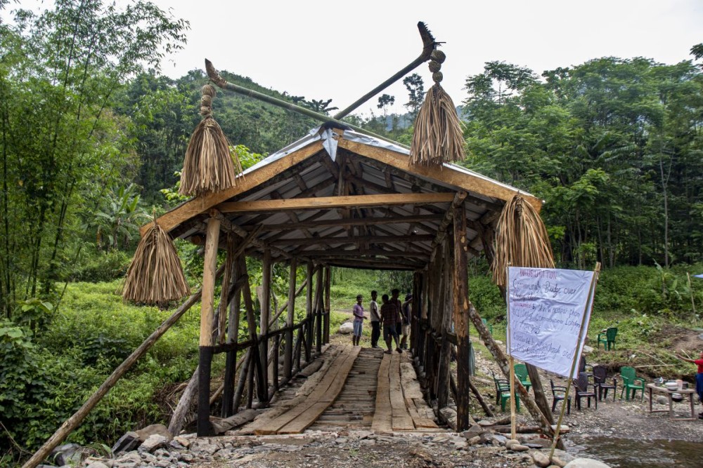 The bridge was constructed through the joint initiative of Team LEMSACHENLOK and the villagers of Sowa Changle.