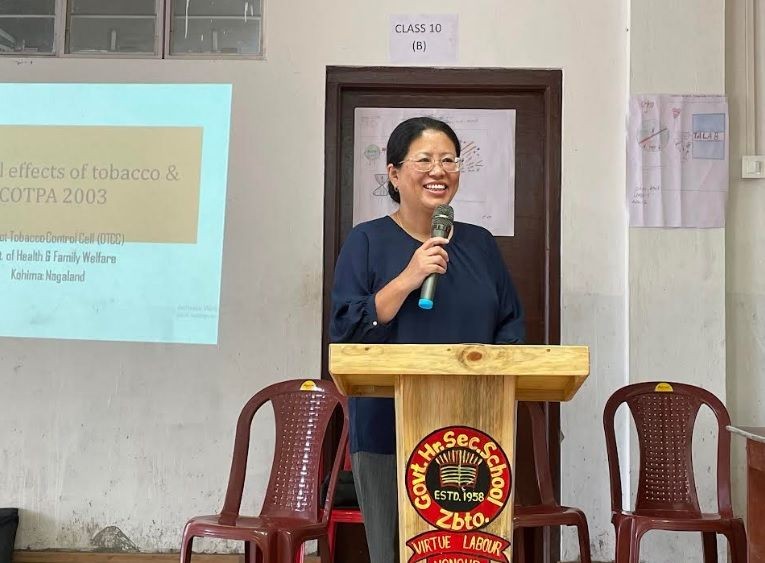 Dr Mezhunuo Angami, Senior Specialist at Hezukhu Memorial District Hospital, Zunheboto, was the guest speaker. She highlighted that 43% of school-going students aged 13–15 years consume tobacco products in Nagaland in the global Context, often influenced by the appealing marketing tactics of the tobacco industry.
